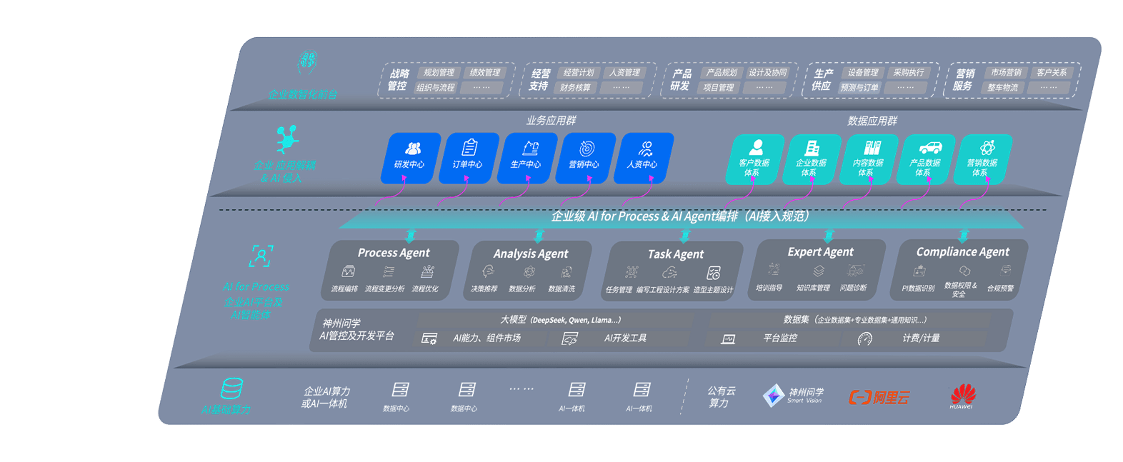 z6mg人生就是博问学智车解决方案是一套基于AI技术的汽车行业智能化系统,,覆盖从底层算力到顶层AI应用的全栈方案。。。方案由算力层、、模型层和应用层组成:算力层,,,方案支持多种一体机配置,,,,具备云端灵活部署、、多云适配以及动态优化计算资源的能力;模型层,,z6mg人生就是博问学平台版提供了企业级AI应用一站式构建与管理平台,,,,支持基于后训练强化技术的汽车企业专属模型的训练、、、评测和运营;应用层,,,z6mg人生就是博问学DeepSeek版提供包括超级员工、、智能招采、、、、智能营销、、、、智能客服、、、、AI for BI等一系列解决方案,,,可助力汽车行业实现数字化转型,,,让管理更智能、、响应更敏捷。。。
